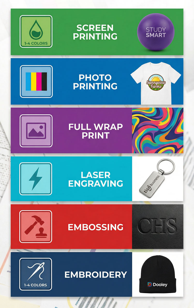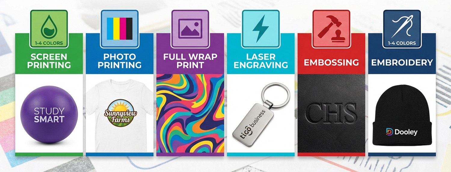WE HAVE ALL THE PRINTING METHODS FOR YOUR LOGO.